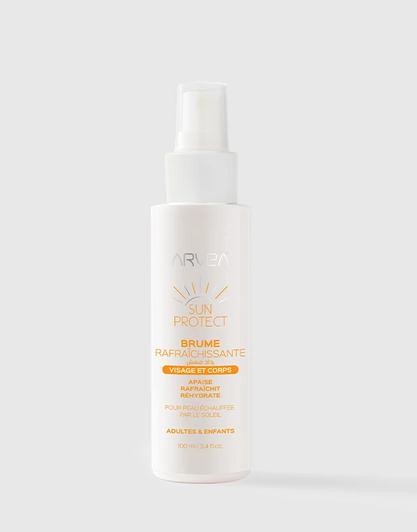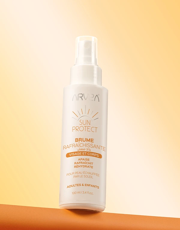 This refreshing mist from the SUN PROTECT range instantly soothes and refreshes sun-heated skin, quenching its thirst and restoring its comfort, thanks to its formula rich in orange blossom extract, calendula flower extract, olive leaf extract and water-soluble plant oils.