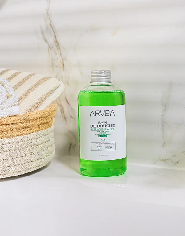 Le bain de bouche ARVEA est indiqué pour un usage quotidien en complément du brossage ou bien en traitement local d'appoint des affections de la cavité buccale (herpès, gingivite, aphtes, inflammation de la muqueuse buccale). Il aide à prévenir l'apparition de la plaque dentaire ainsi que les problèmes de gencives. Le goût agréable de menthe poivrée et d’eucalyptus laisse une sensation de fraîcheur et de propreté dans la bouche.